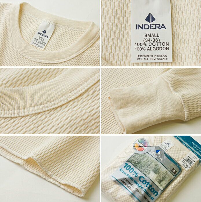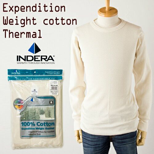 アメリカを代表する老舗インナーメーカー、INDERA MILLSのサーマルウエア。こちらの#890はミリタリーイシュー(軍配給品)としても使用されている寒冷地仕様のモデルです。 ボディーにはセーターやジャケットにも使われる9.5ozラッセル編ニットを使用。深い凹凸を持つ編地が体の周りの温かな空気を含むことで、高い保温力を発揮します。吸汗性が高く肌触りの良いコットン100%、しっかりと体にフィットして着心地も抜群。寒い冬やアウトドアにも頼れる一着です。