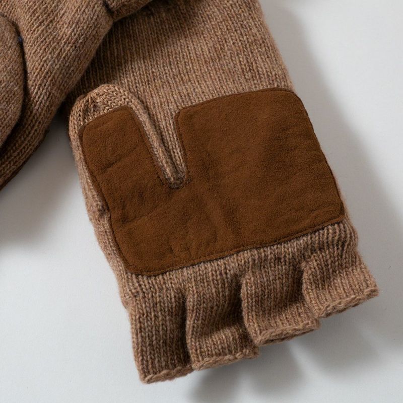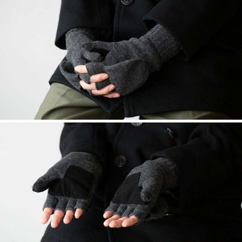 必要な時だけ防寒性をアップできるミトンカバー付きのフィンガーレス手袋。