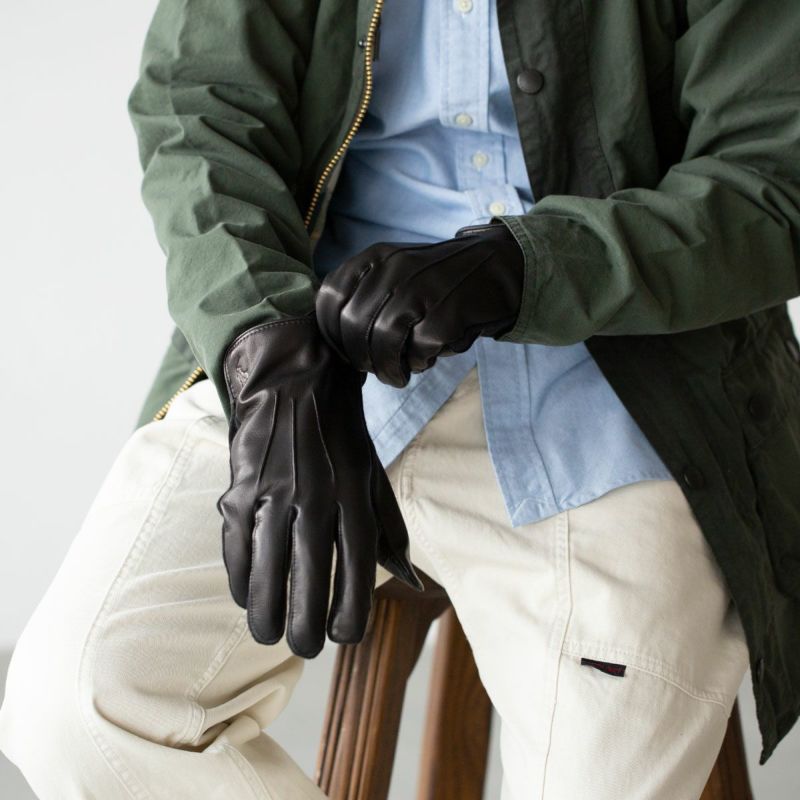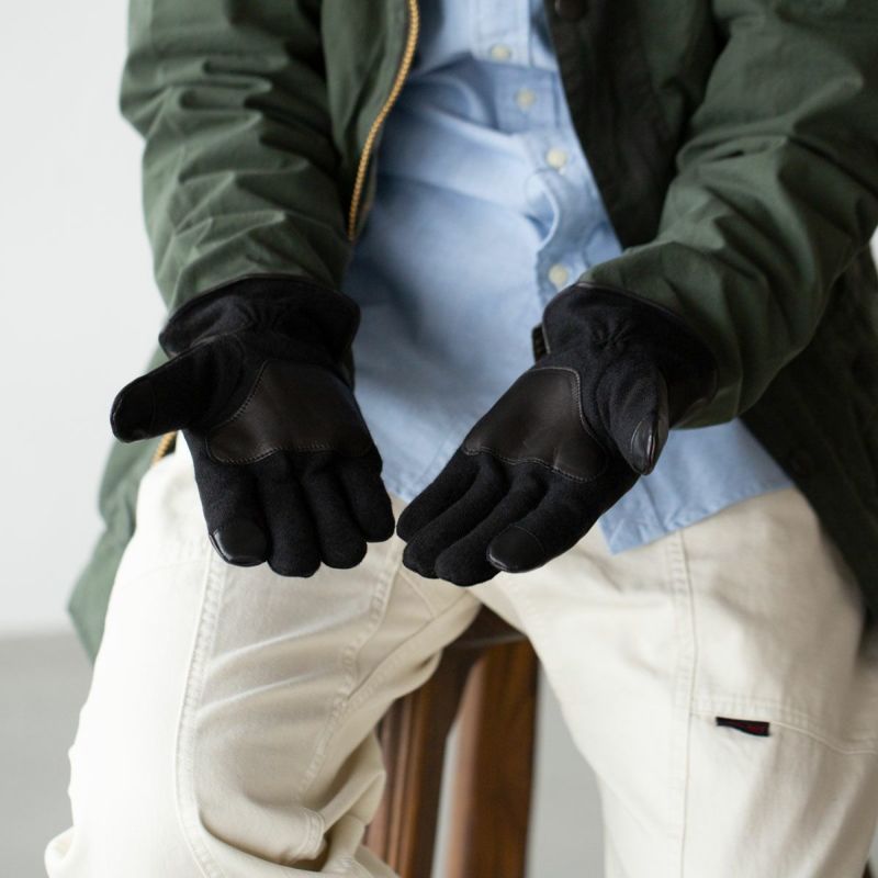 柔らかで丈夫なナッパレザー(羊革)と保温性の高いウール素材のコンビネーションでまとめた防寒用手袋。