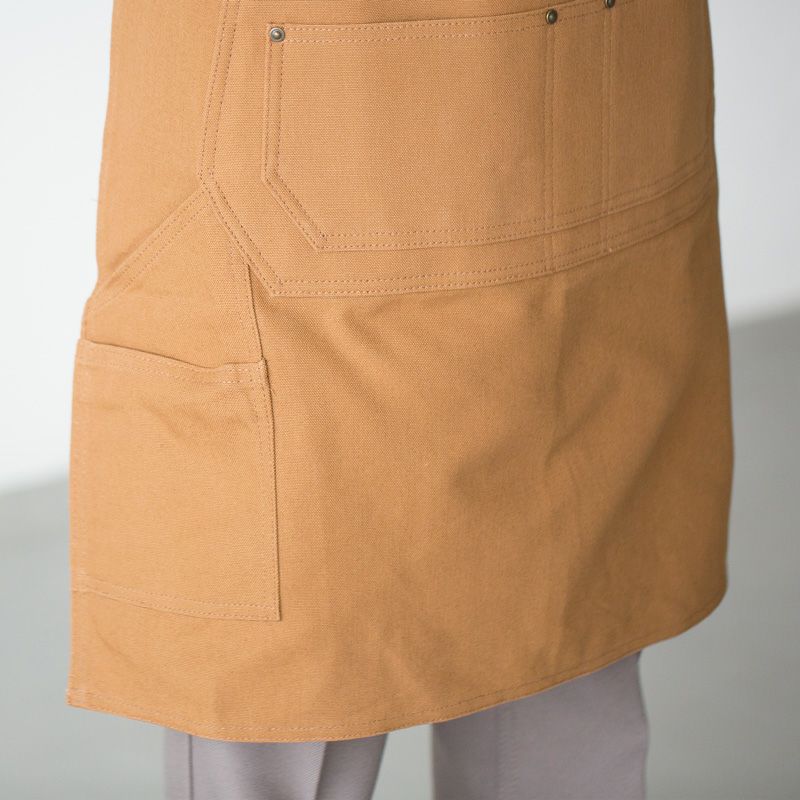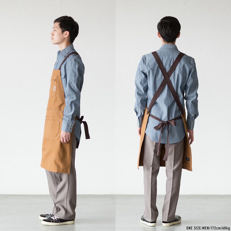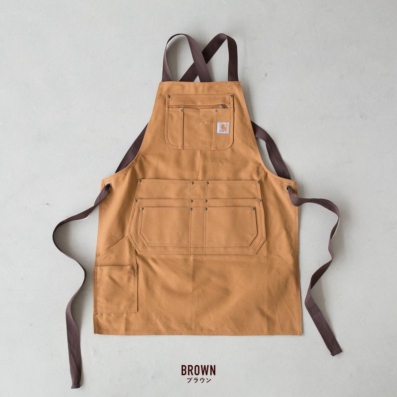 日曜大工、クッキング、車やバイクの整備など、DIYの相棒に最適なワークエプロン。12オンスのコットンダック生地を採用した丈夫な作りになっています。リベットで補強されたフロントポケットや胸のファスナー付きポケット、サイドのツールポケットなどカーハートらしいワークディテールも健在。使い込むことでアタリや色落ちなどの経年変化も楽しめるアイテムです、いかがでしょうか。