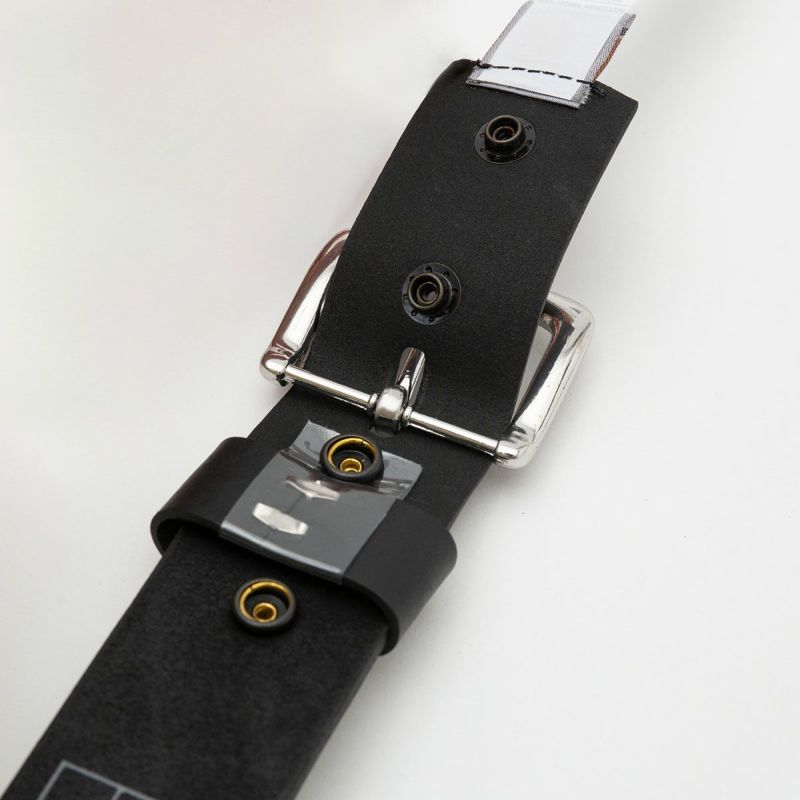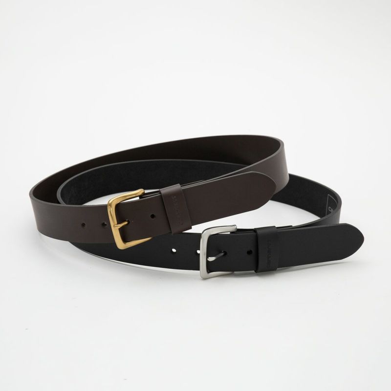 どんなコーディネートにも合わせやすいシンプルなレザーベルト。カーハートらしい重厚感のあるトップグレインレザーを使い、幅広なデザインに仕上げています。スナップボタンを外すことでバックルの交換が可能。