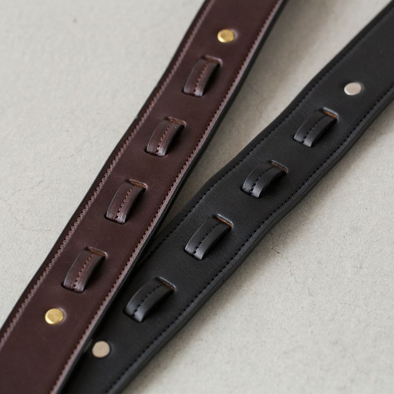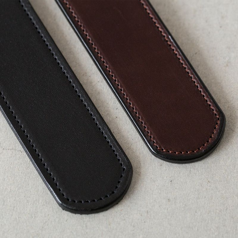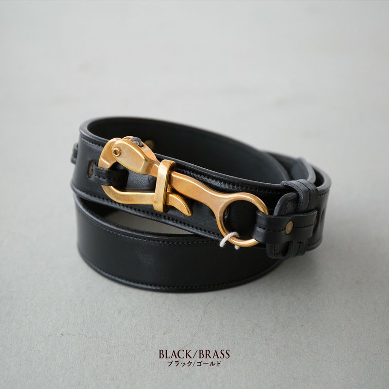 こちらはペリカンの嘴のような可動式バックルが主張するホックピックベルト。使うたびに道具としての魅力を感じ取れるギミック、存在感のある重厚なルックスが魅力です。使い込んで歳月が経った時に美しい経年変化と丈夫さを実感できる逸品。