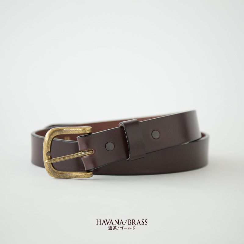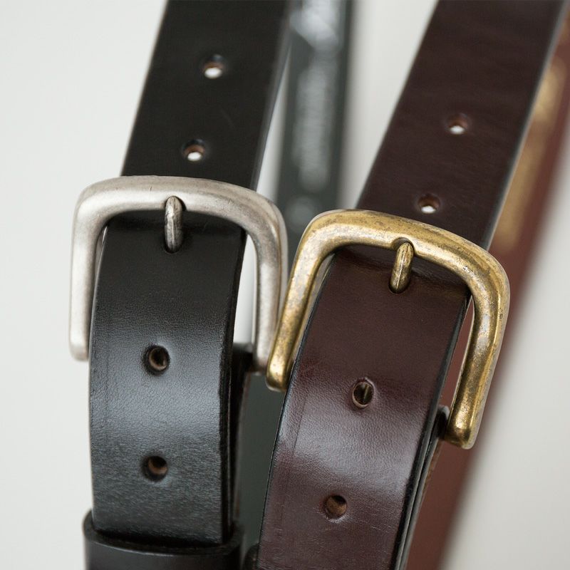 存在感のある重厚な雰囲気が魅力的なピンバックルベルト。流行に左右されないシンプルな見た目で、様々なボトムスと相性のいいデザインに仕上がっています。使い込むほどに味わい深くなり、経年変化による違った風合いを楽しめる逸品です。