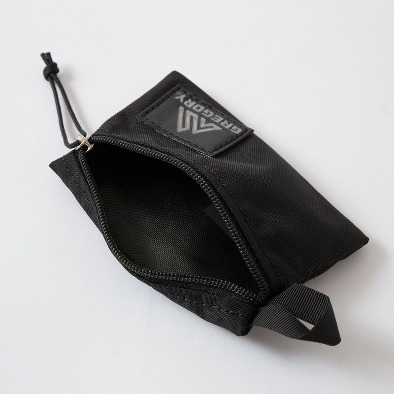 グレゴリーで最も小さな商品であるカードサイズの小さなジッパーポーチです。小銭入れとして、貴重品入れとして、使い方はあなた次第。カラビナを取り付け可能なループ付き。