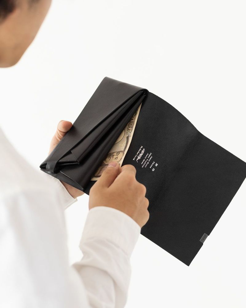 祝いの席で贈答品やお祝儀を包む一枚布「袱紗」をモチーフにした、国産レザーのロングウォレット。