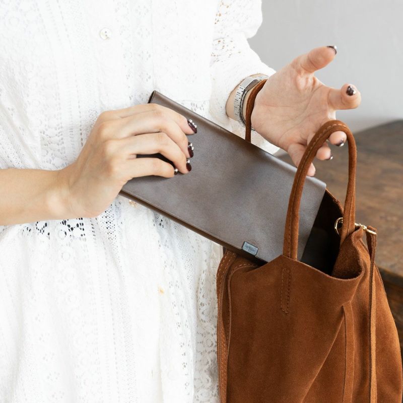 日本の美意識を大切にした、袱紗モチーフのレザー長財布。