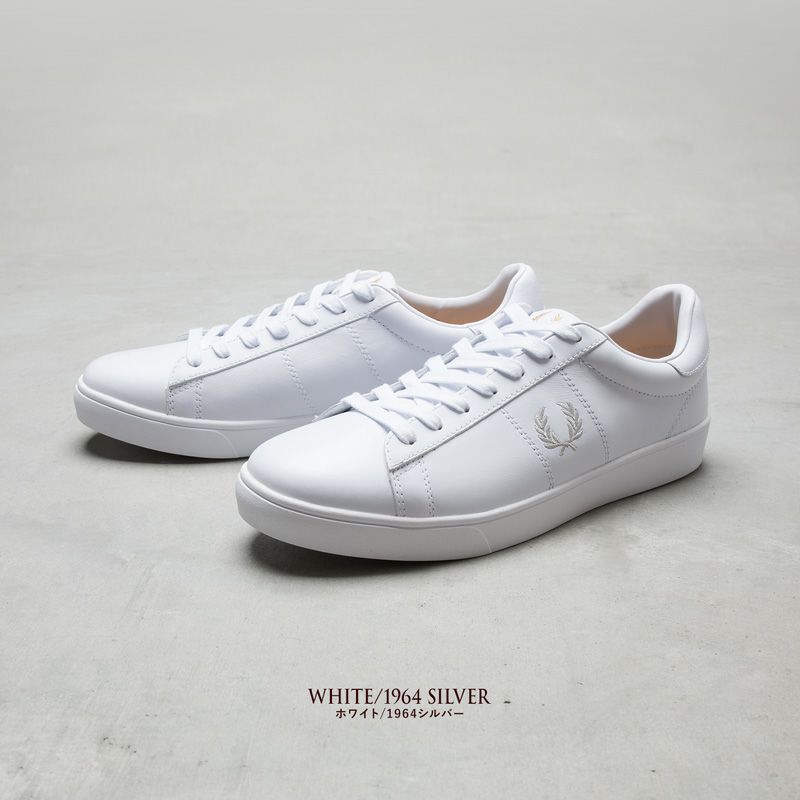 テニスをルーツに持つFRED PERRYのアイコンモデル、スペンサー・レザー・テニスシューズ。モデル名は初代ウィンブルドンチャンピオンの英国人、スペンサー・ゴアから命名しました。シンプルなシルエットにややボリュームのあるカップソール、アクセントカラーをローレルとライナーに持たせています。