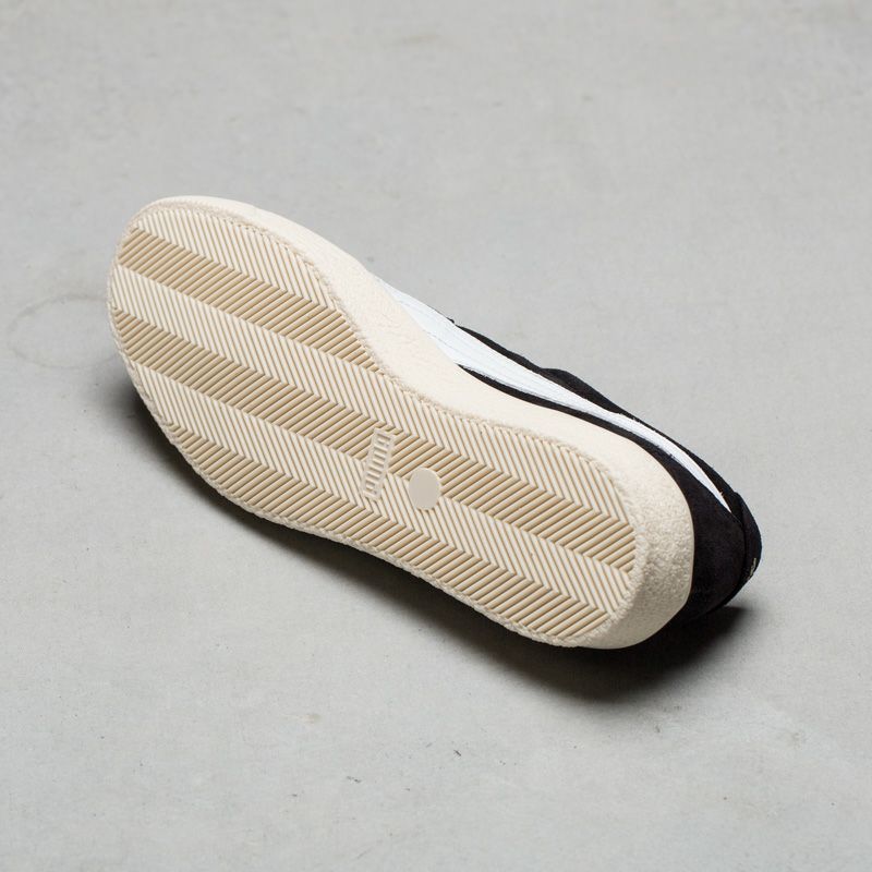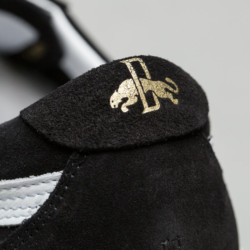 薄目なシルエット、スウェードアッパーに施されたレザーのPUMAフォームストリップ、滑りにくいラバーアウトソールが特徴です。