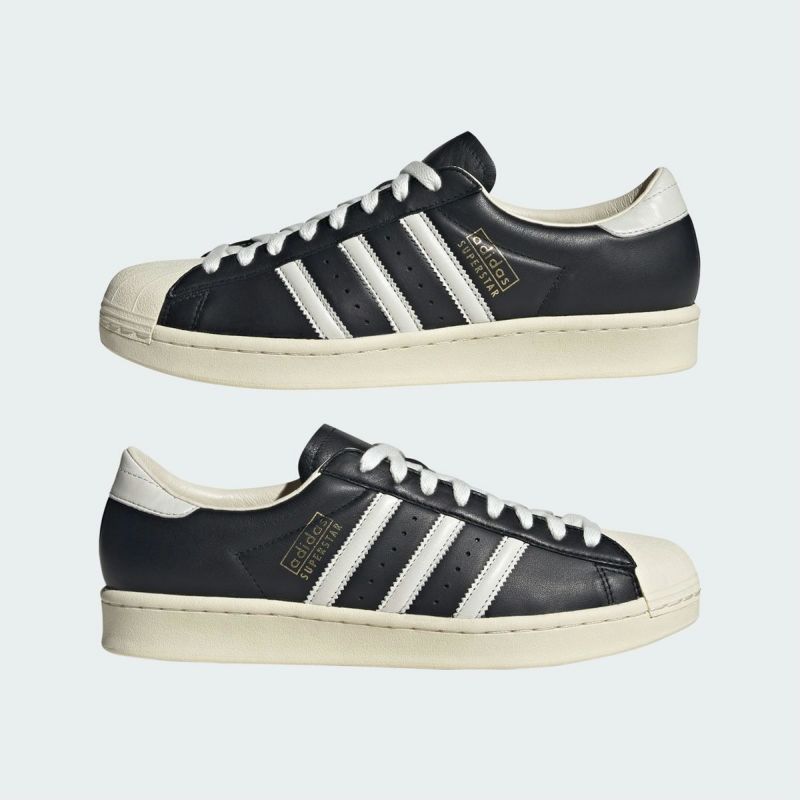 アディダスお馴染みのトレフォイルはスーパースター初登場以降に生まれたもの。発売当時の復刻モデルである本モデルでは、通常スーパースターのシュータンやヒールに配されるトレフォイルロゴをオミットしています。