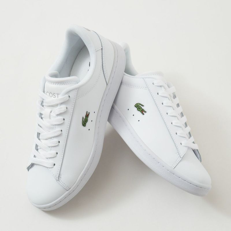 オールホワイトカラーに、サイドにはワニロゴが入ったラコステレディースレザースニーカー。