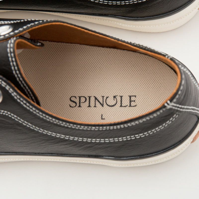 ベストセラーのSP-110と同じ天然カンガルー革を贅沢に使用したアッパー、巻き上げソールをイメージしたトゥーガード、おなじみのステッチワークなど、ベーシックなルックスでありながらスピングルの魅力を堪能できる仕上がり。