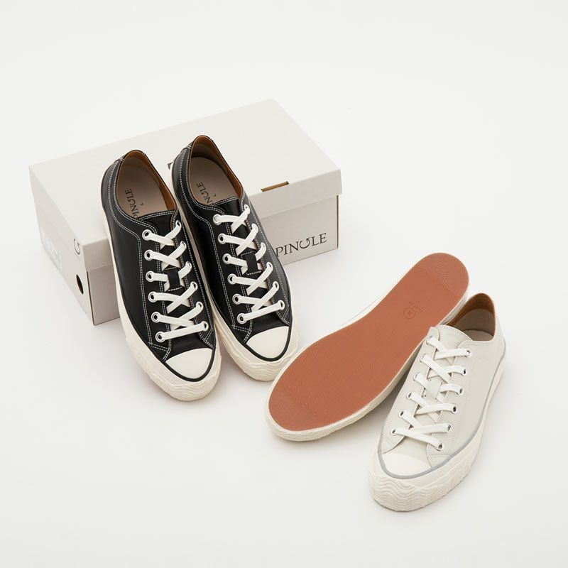 職人の丁寧な手仕事で生み出される純国産スニーカー「スピングル」。 こちらはオーセンティックなスニーカーをベースに、SPINGLEのこだわりを詰め込んだ一足です。