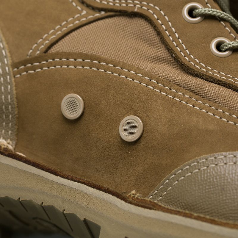 米軍実用ブーツの中でも人気の高いダナー製のRATブーツ。こちらは気温の高いフィールドでの使用が想定されたホットウェザーモデルです。通常時には通気と放熱を助け、水が侵入した際は脱がずに排出可能なドレンホール付き。吸湿速乾ライニングでドライな履き心地が持続します。