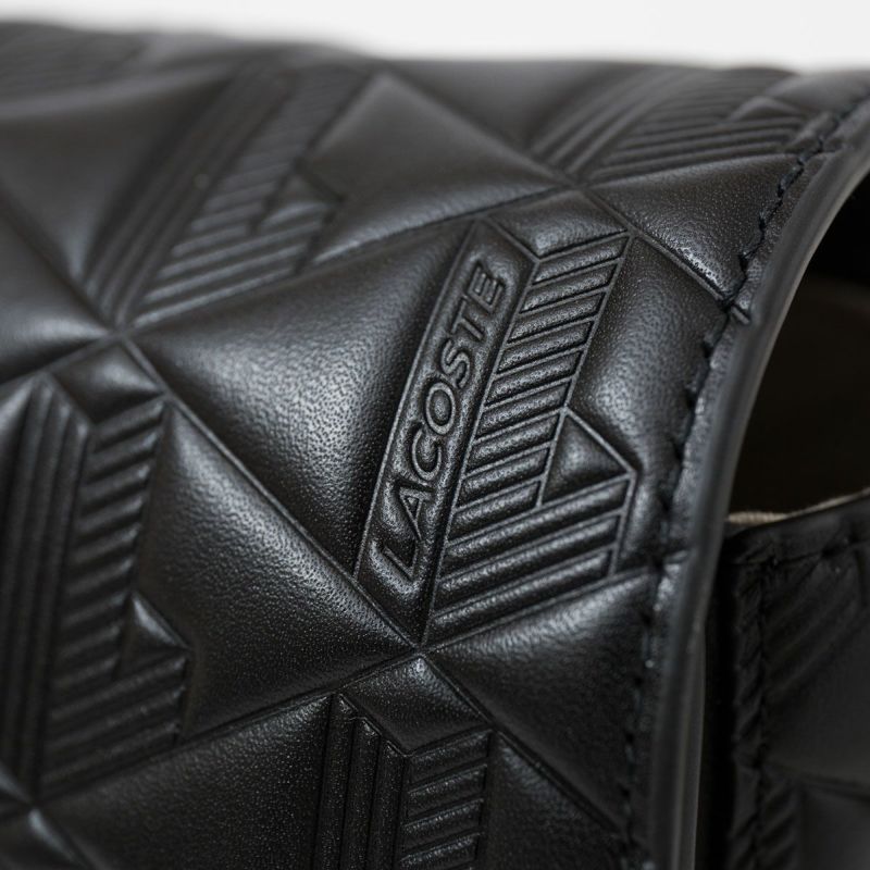 セミマットな質感の牛革に、立体的な「L」マークやところどころにブランドロゴが散りばめられた、ラコステオリジナルの型押しモノグラム柄。傷もつきにくく、長く愛用できるしっかりとした上質さ。