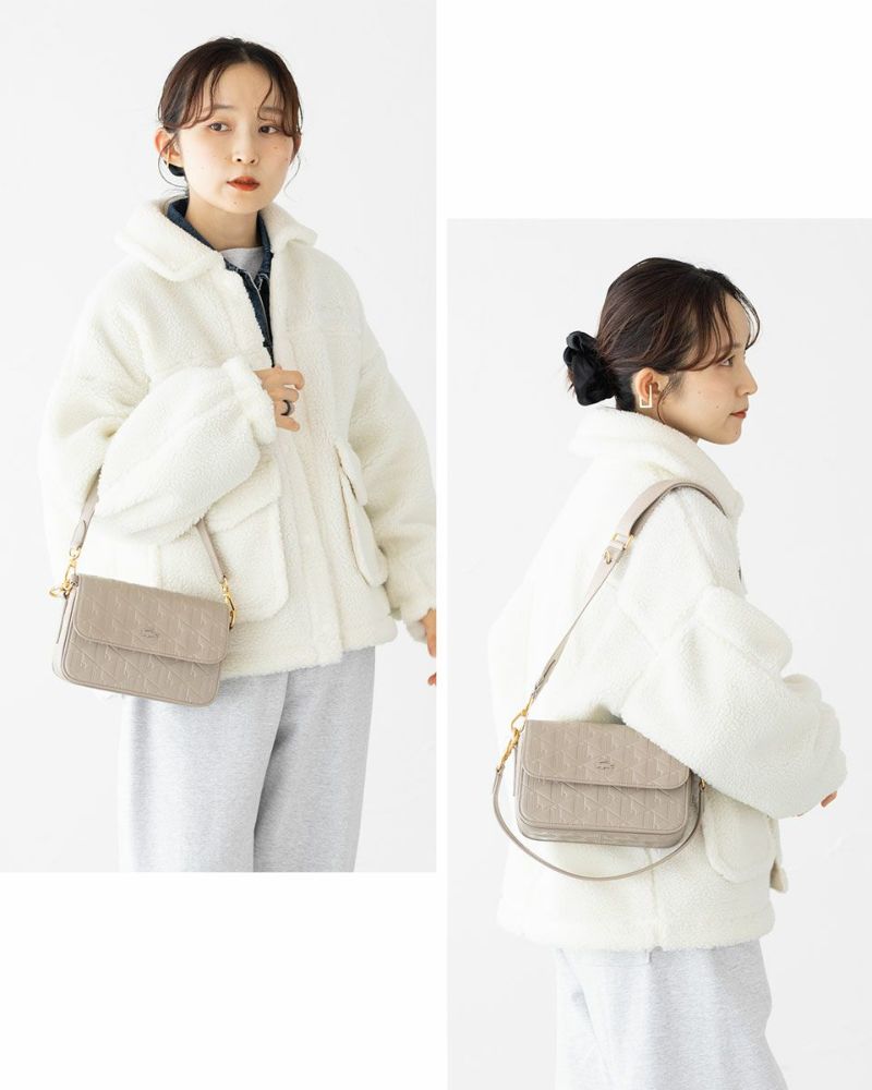 ・ハイクオリティなレザー素材に型押しでモノグラム柄を配置 ・横長のコンパクトなシルエットをフラップクローズでエレガントに ・ボディと同色で溶け込ませたメタル素材のワニロゴプレート ・着脱式のストラップ ・3つのポケットを備え、デイリーに活躍 |