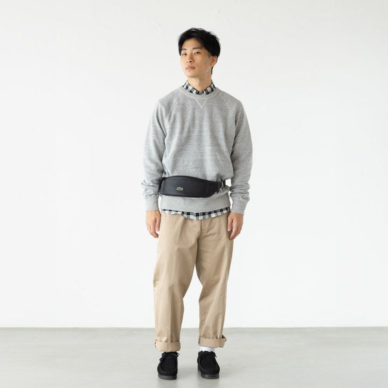 ラコステから、定番の鹿の子の質感をエンボス加工で再現したスリムなウエストバッグが登場しました。