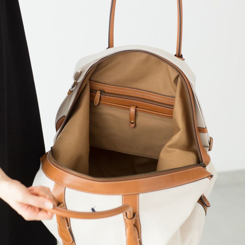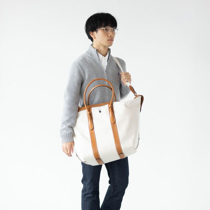 丈夫な生地と大容量が特徴のラルフローレントートバッグ。レザーのハンドル補強が高級感を演出し、バッグのファッション性を格上げしてくれます。