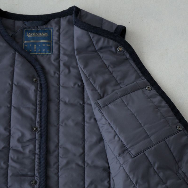 LAVENHAM 縦型キルトのカラーレスベスト。