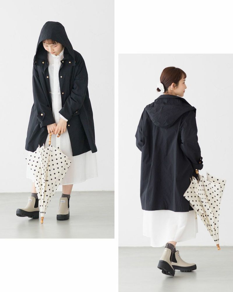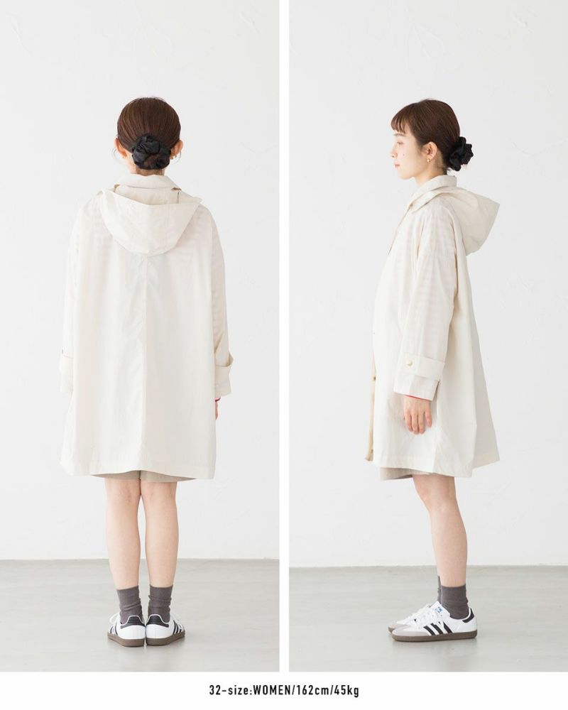 暖かい時期も羽織りやすい軽量生地でありながらしっかりとした生地感で、レインコートとしての撥水性も抜群。これ一つ携帯しておけば、雨の多い時期も安心して外出できそうです。