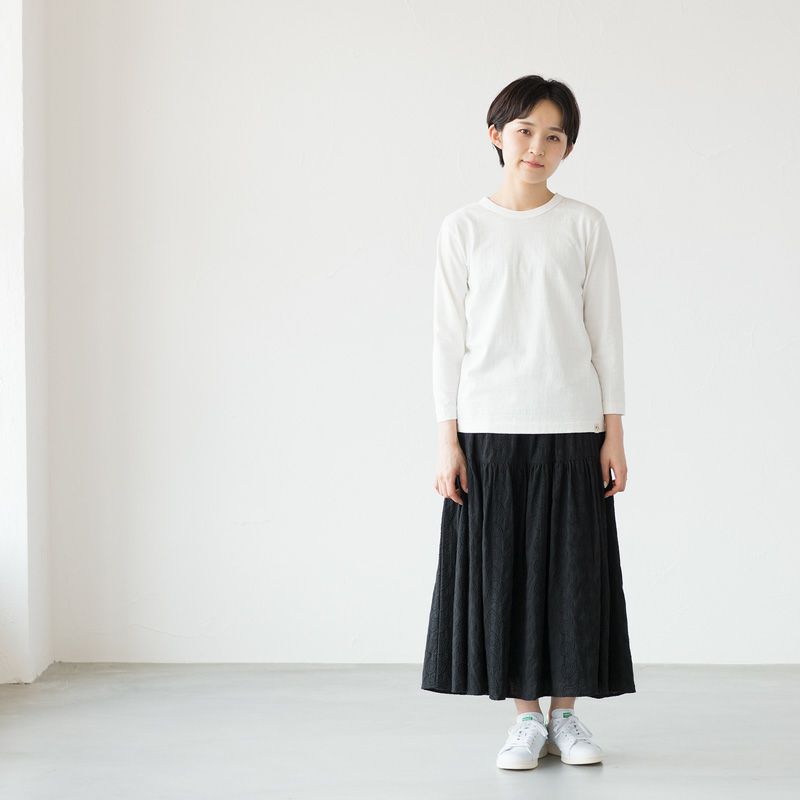 吊編み機で筒状に編んだそのままの形で仕立てた丸胴編みは、脇に縫い目がないので着心地抜群。すとんとした美しいシルエットも魅力です。