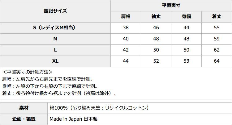 Sサイズは女性の方がゆったりと着れるサイズです。