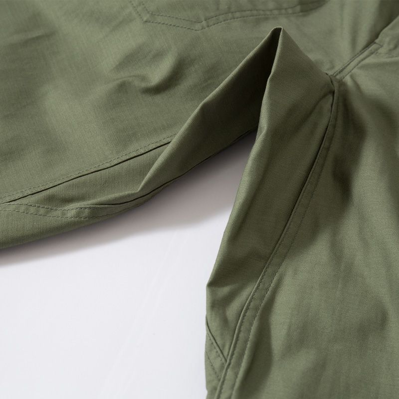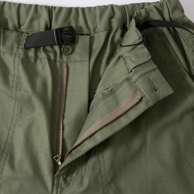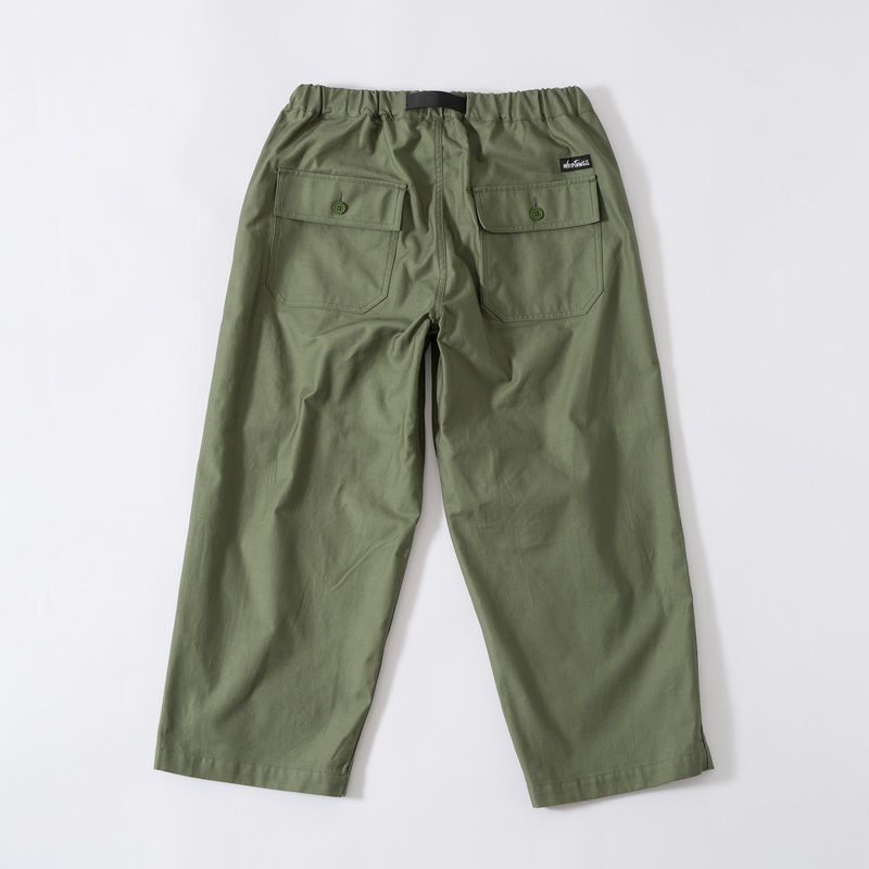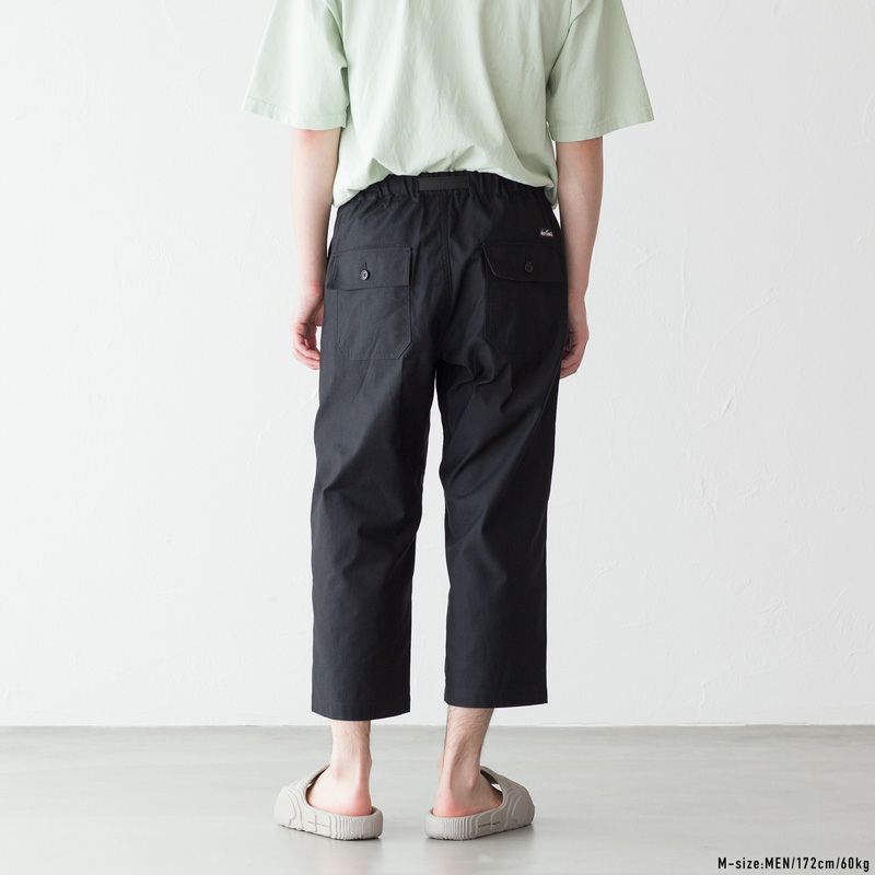 温暖なシーズンに最適なライトバックサテン生地で仕立てたミリタリーライクなクロップドパンツ。ベイカーパンツとクライミングパンツのディテールを融合することで、アウトドアで真価を発揮するスタイリッシュな魅力に溢れた一本となっています。