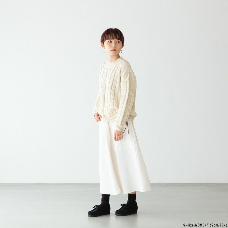 足首がちらっと細見えする丈感と、程よく広がるフレアシルエットでカジュアルながらも上品な雰囲気に。かつ動きやすさも◎
