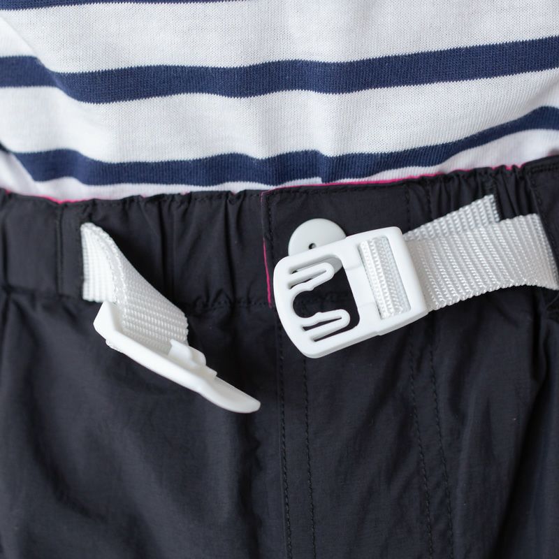 海や川遊びにも対応したタイプライター素材を使用。3つのファスナーポケット、後ろファスナーでスリットを作れるので足さばきも◎アクティブなお出かけにもぴったりなアイテムです。
