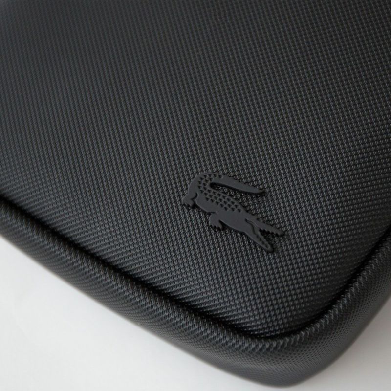 LACOSTEブランドを代表するアイテム、ポロシャツ。その定番生地である鹿の子地の組織表情をPVC素材にエンボスで表現した、スポーティーなカメラポーチです。