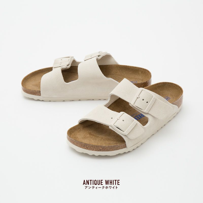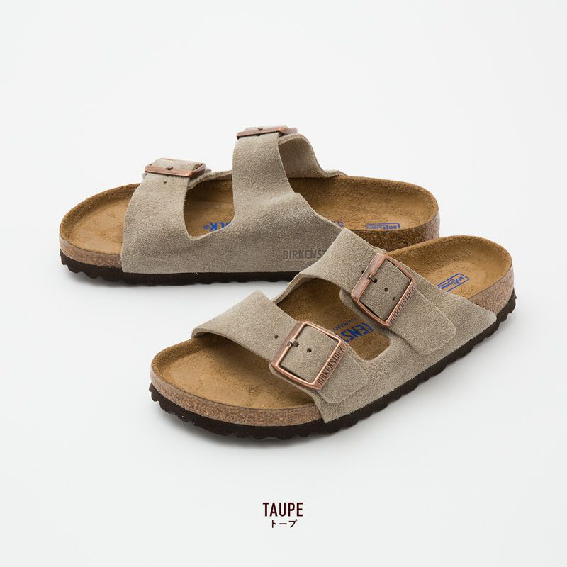 ビルケンシュトックを代表する定番ツーストラップサンダル「アリゾナ」。2本の太いベルトで足をしっかりホールドするのでフィット感抜群。風合い豊かで柔らかなスウェードレザーを纏ったプレミアムな一足です。カジュアルからシックなモードスタイルまでカバーできる普遍的なデザイン。暖かい季節の素足着用はもちろん、肌寒い時期も厚手ソックスやタイツを重ねて履くことで様々なコーディネートが楽しめる守備範囲の広さも魅力。お手入れ次第で長年愛用でき、味のある経年変化が楽しめるのも嬉しいポイントです。
