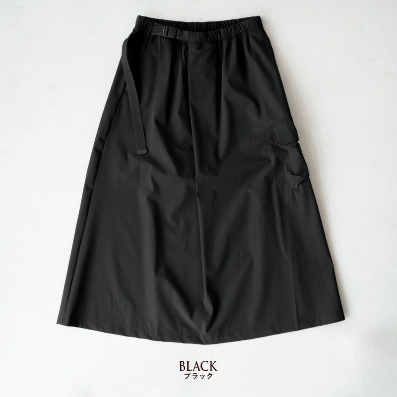 サウザンドマイルからラップ風デザインの高機能Aラインスカートが入荷しました。