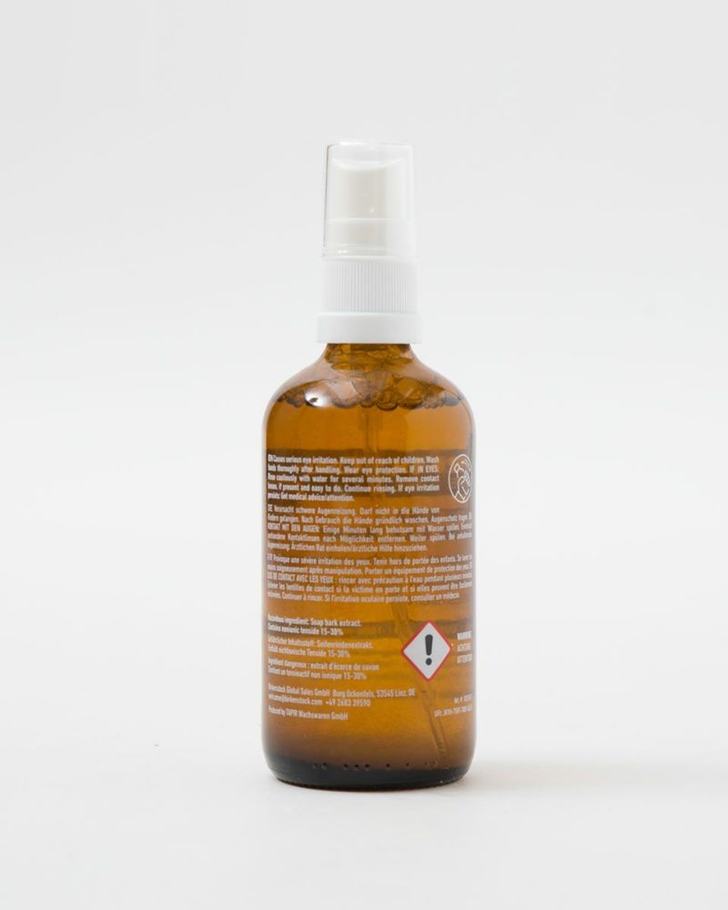 特殊な界面活性剤と水、パナマ産樹皮由来のエキスを独自配合し、気になるフットベッドのシミや黒ずみをしっかり落とします。スエードやオイルドレザーにも対応しており、アッパー、ソールと全体のケアが叶う優れものです。
