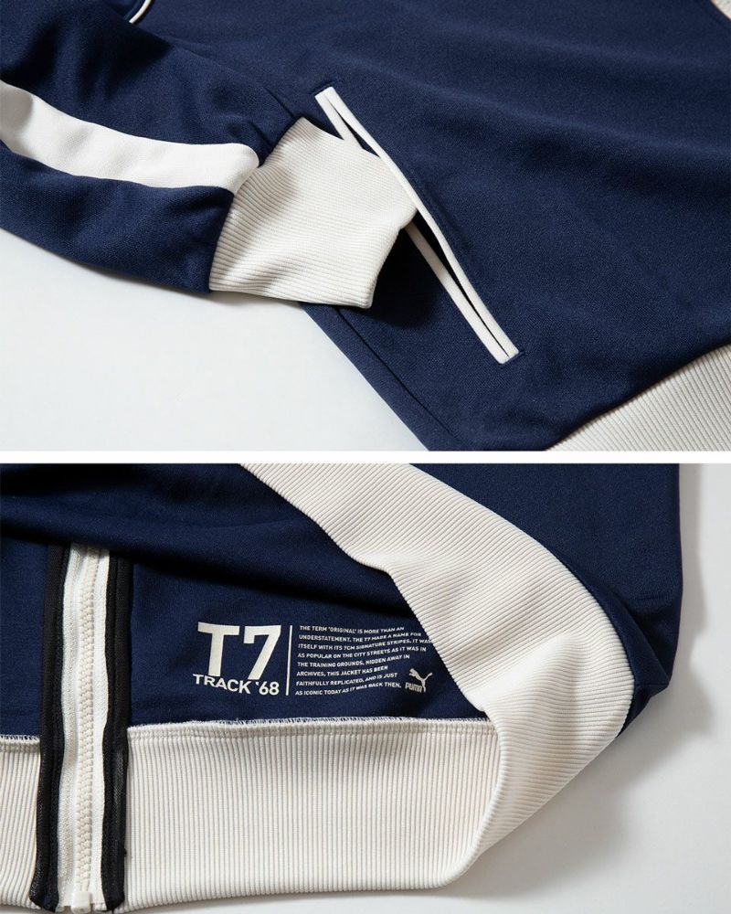 「T7」とはプーマシューズのアイコン、フォームストリップから着想を得た7cmテーパードのサイドライン。現在ではPUMAジャージに欠かせないアクセントとして多くの人を魅了しています。