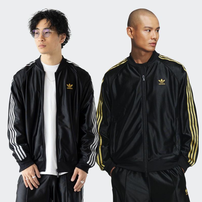アディダス 光沢 ジャージ 黒×金 JZO91 スーパースター パック トラックトップ メンズ