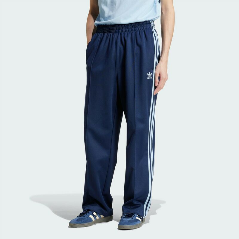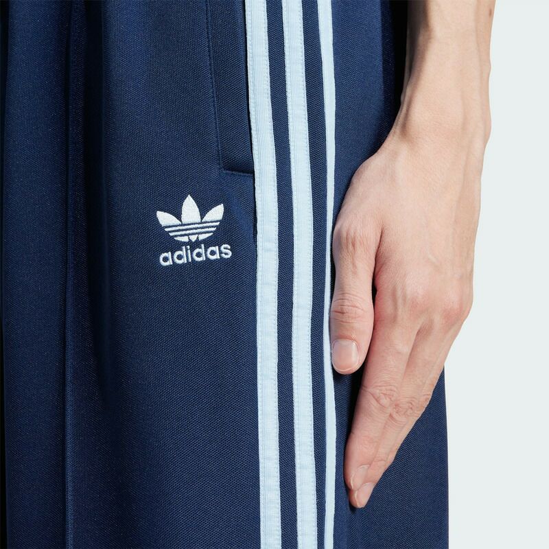 3ストライプの入ったクラシカルなデザインで人気のアディダスオリジナルスジャージ。こちらはワイドなフィットとハリのある素材が特徴のトラックパンツです。