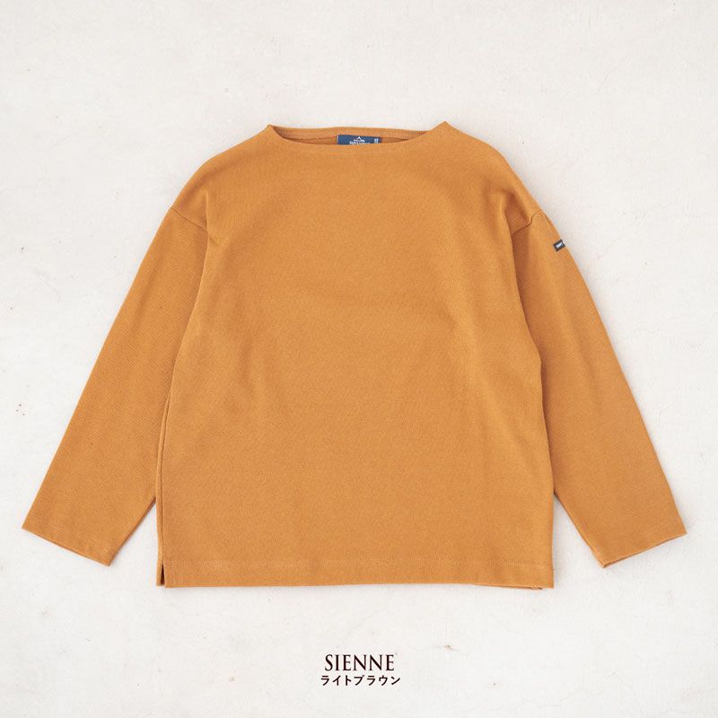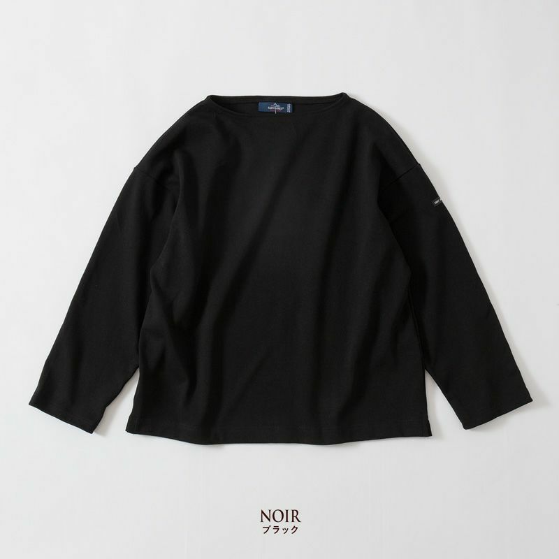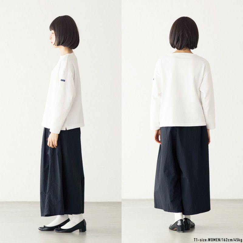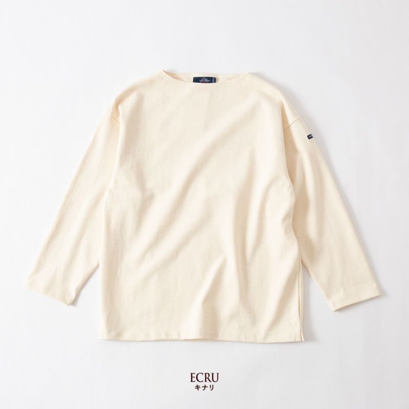 ボートネックや九分袖などキホンのディテールは定番ウエッソンと一緒。ドロップショルダーと裾のスリットを備えることでモダンなエッセンスをプラスしています。