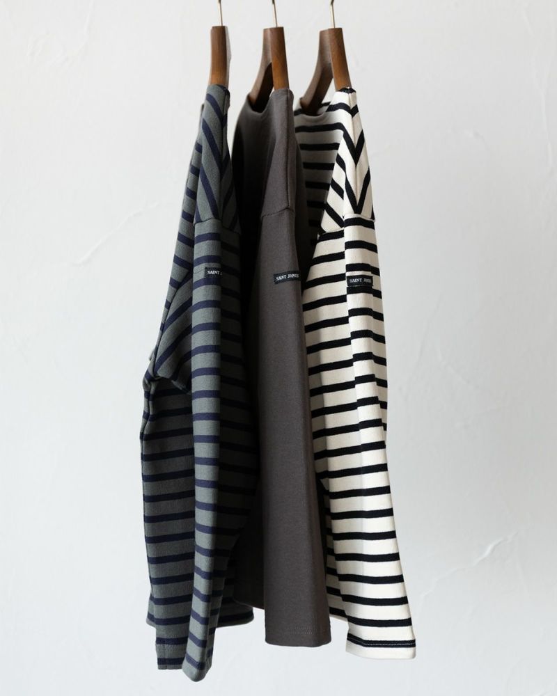 トレンドの着こなしで、快適かつ新鮮なフレンチカジュアルを楽しめる、セントジェームスの新定番バスクシャツ、いかがでしょうか。