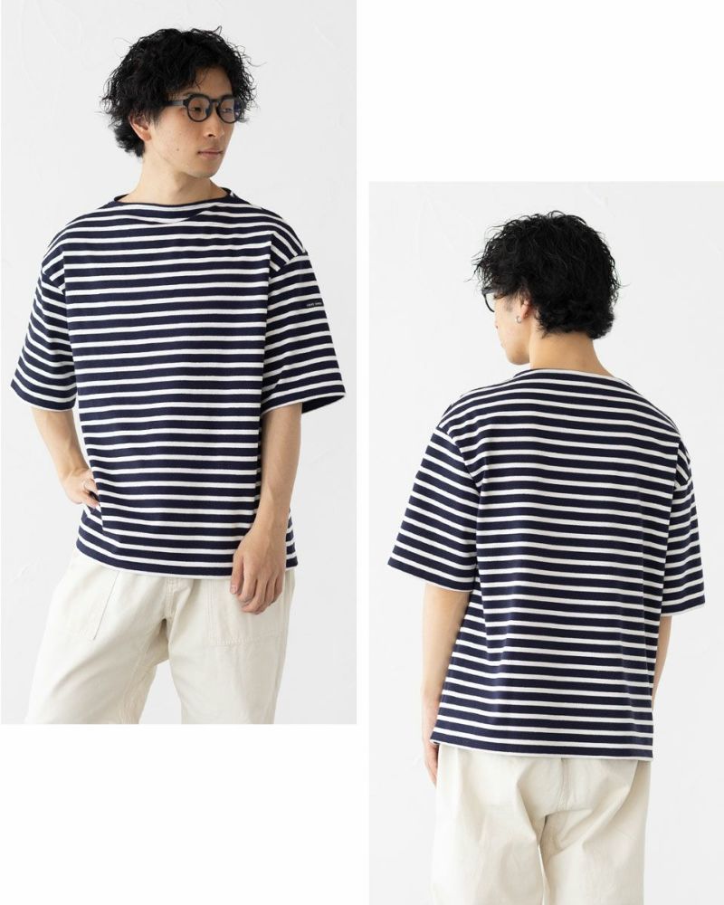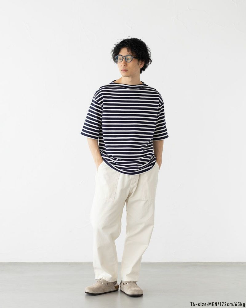 SAINT JAMESの定番、ウエッソンの生地で仕立てたドロップショルダー五分袖カットソー。