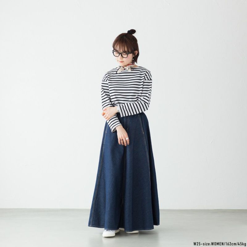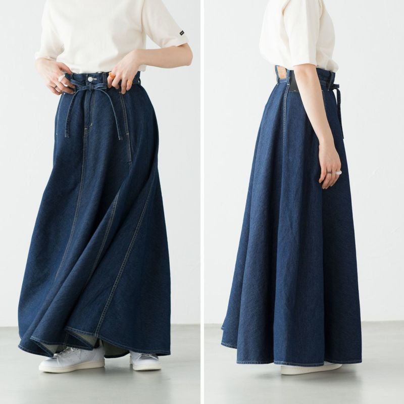 たっぷりロング丈&しっかりデニムのフレアスカート。