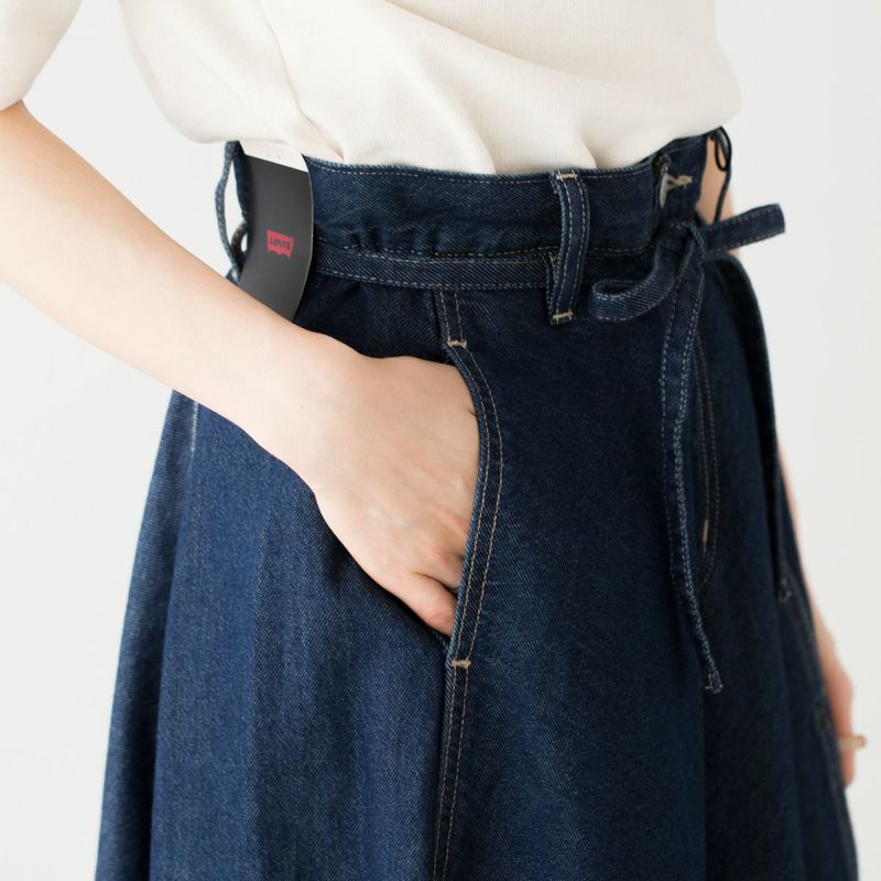 たっぷり足元ギリギリまで来るロング丈がデニムスカートの中では珍しく、高身長の方にもおすすめ。