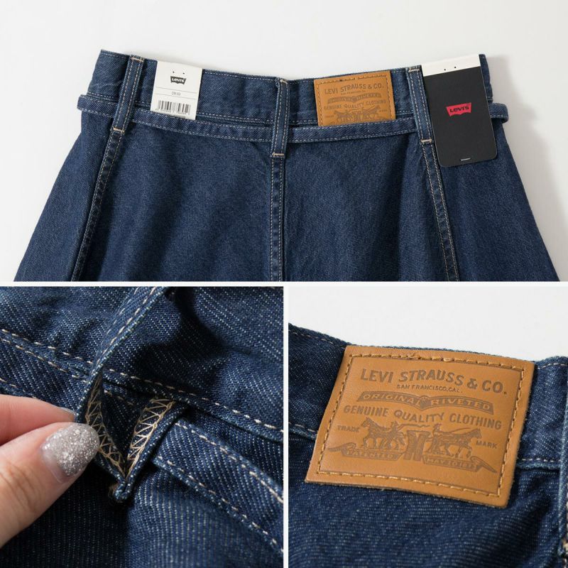 ミッドライズ仕様でややゆったりめの作り。ワンサイズ下げるか、ぎゅっと絞ってハイウエストで着てもバランス良しです◎。