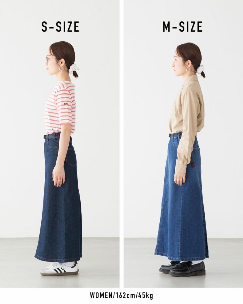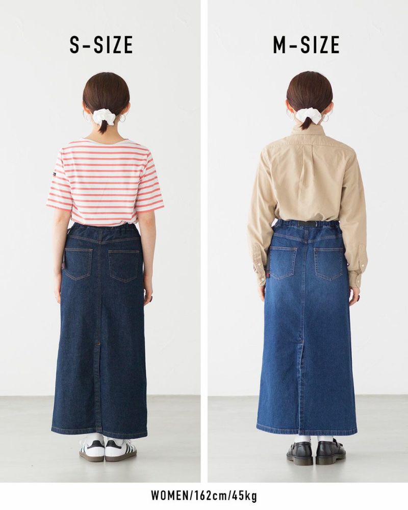 グラミチ人気のデニムシリーズ、レディースモデルのデニムロングスカート。