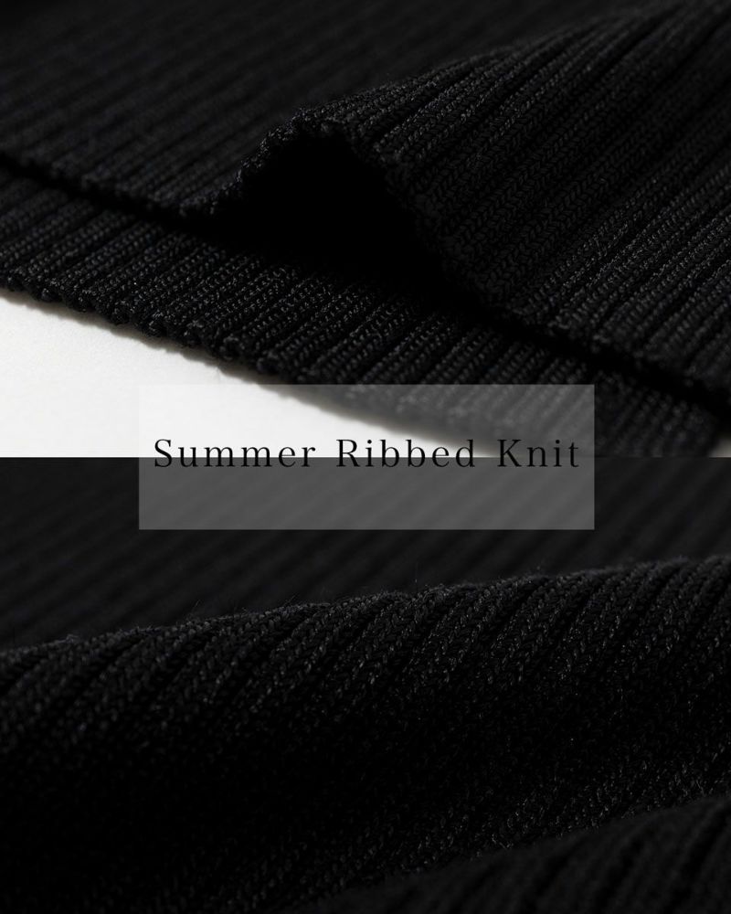 夏でも履ける、とろんと柔らかい光沢のある生地感のサマーリブニット。