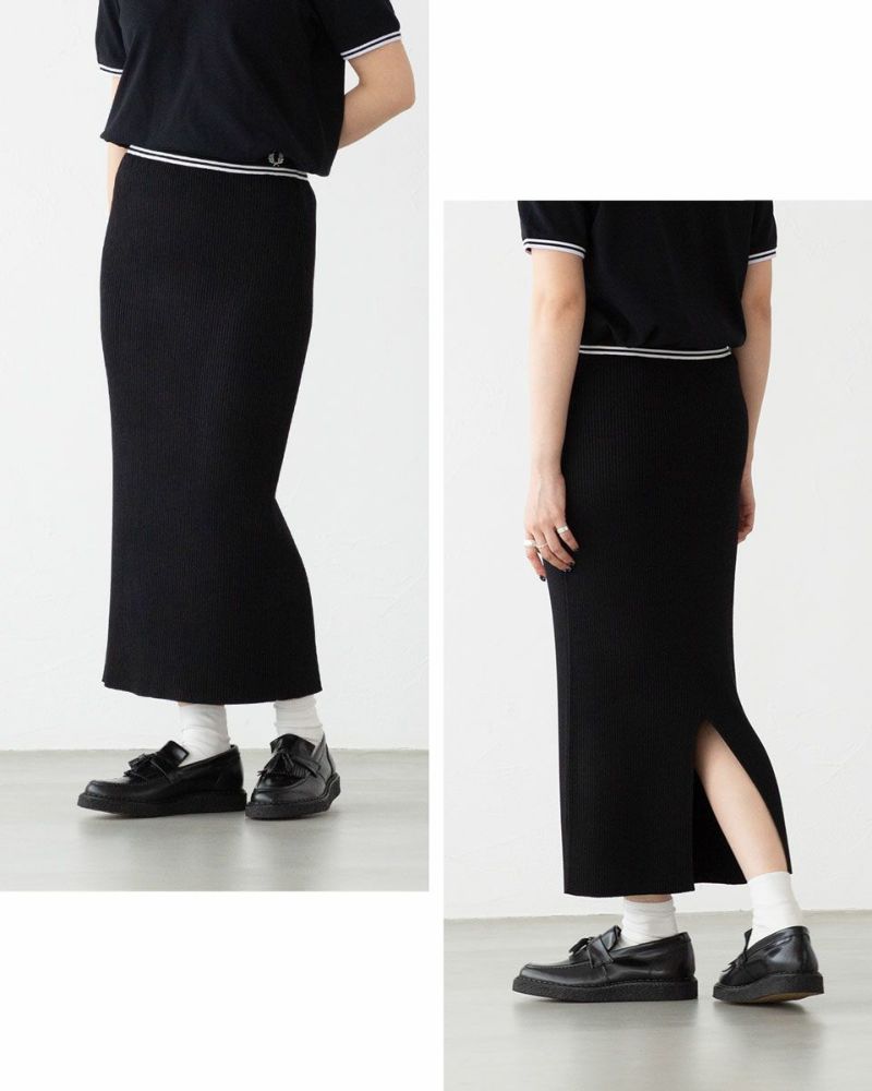 すっきりしたタイトなシルエットのサマーリブニットスカート。