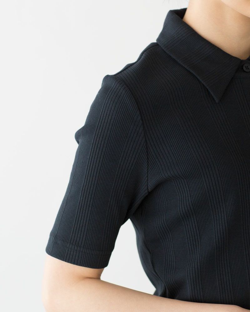 普通のポロシャツが苦手な方にもおすすめしたい、大人な雰囲気のリブポロシャツです。
