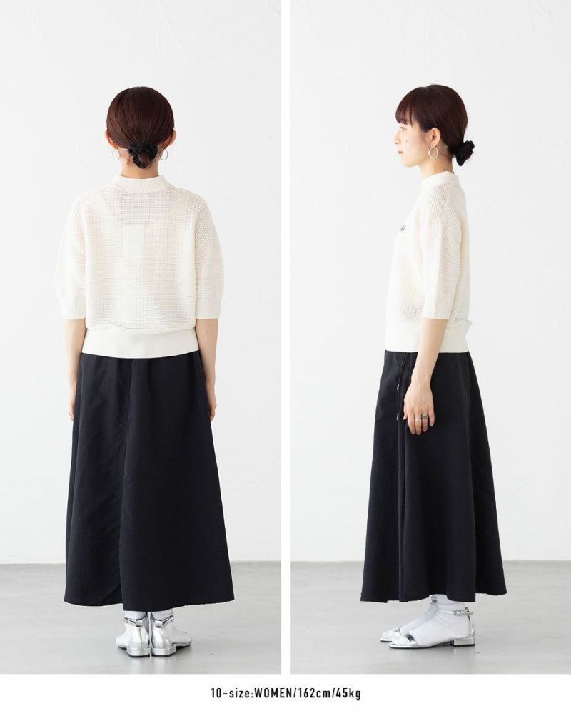 柔らかさと程よいハリ感のあるニット地。肌なじみの良い綿麻素材で伸縮性・吸水性も◎。品の良い透け感と、夏爽やかに着れる通気性も備えた着心地抜群の素材をチョイス。