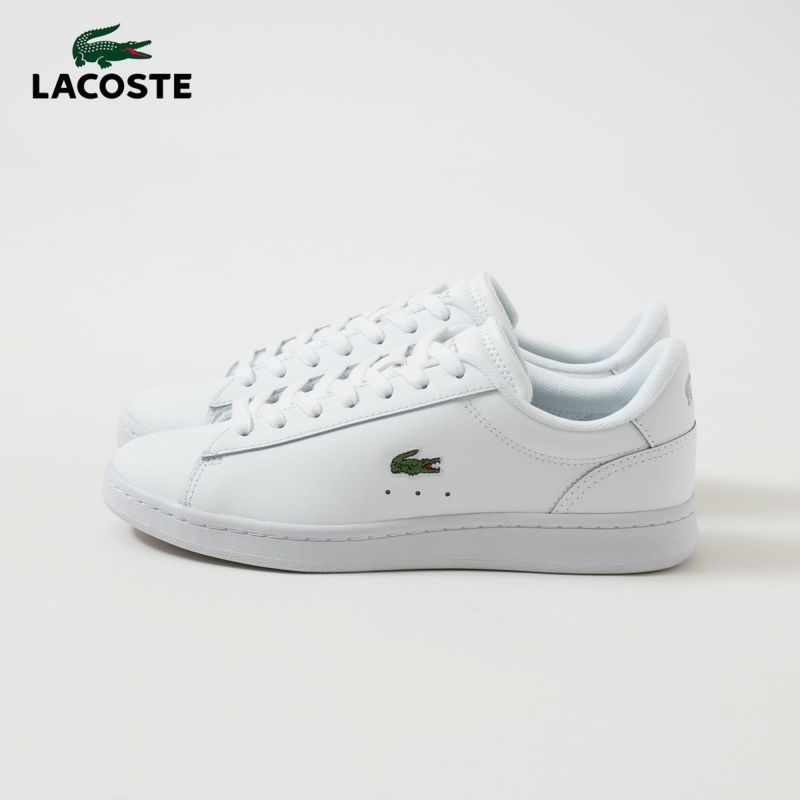 オールホワイトカラーに、サイドにはワニロゴが入ったラコステレディースレザースニーカー。