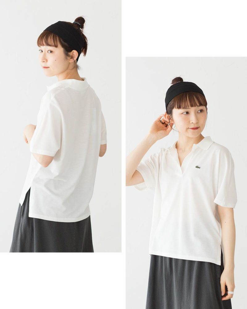 カジュアルすぎるポロシャツが苦手な方も着やすい、ボタンレスのスキッパーネックやブラウスライクなデザインがポイントです。