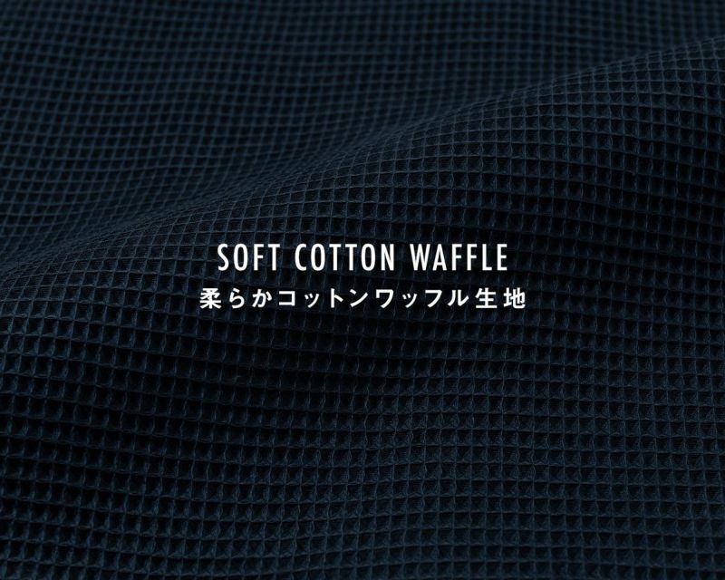 環境保全に配慮したオーガニックコットン仕立てのワッフル素材、春夏に快適なドライなタッチ感と柔らかな風合いがポイントです。