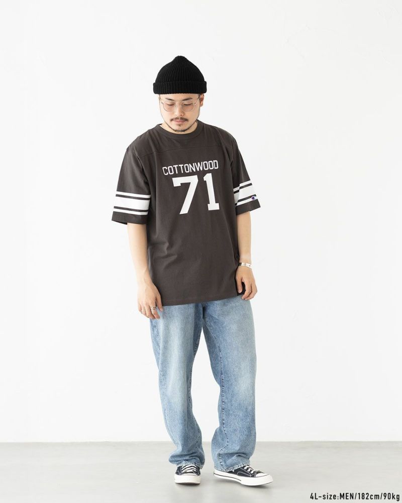 チャンピオンを気軽に楽しめるエントリーライン「BASIC」のフットボールTシャツ。全米カレッジのアスレチックウェアを手がけてきたチャンピオンならではの本物感あふれるアイテムです。